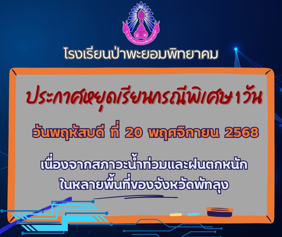 ยินดีต้อนรับเข้าสู่เว็บไซต์ โรงเรียนป่าพะยอมพิทยาคมค่ะ...